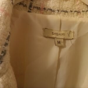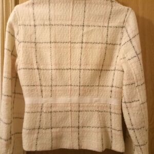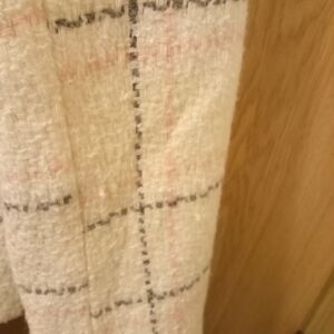 Beautiful Blazer the pictures don't do it justice but it's cream with pink and gray plaid cinched waist and open cuffs woman's medium wool blend very y2k