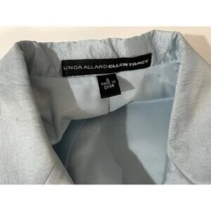 ellen tracy Silk Long Blazer Size 8 Sky Blue Taffeta Long Sleeve 3 Button Close