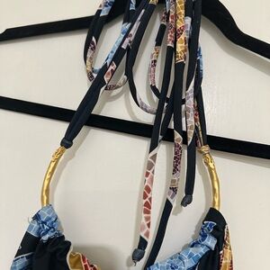 Chic Elena Makri Mykonos Black Multicolor Halter One-Piece Swimsuit