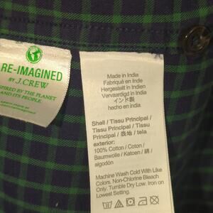 J.Crew XXLT Brushed Twill Shirt Mens Green Navy Plaid Classic Fit Long Sleeve