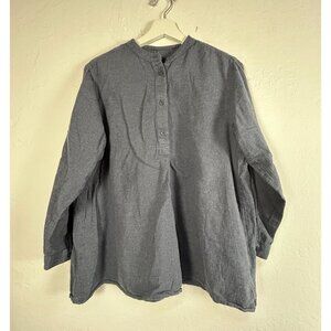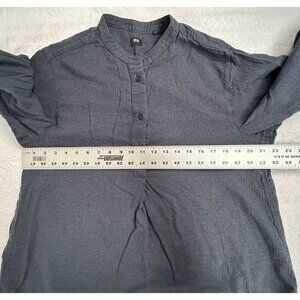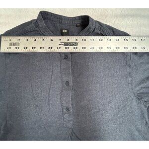 Uniqlo Womens Gray Cotton Long Sleeve Henley Shirt Large Pullover Band Collar