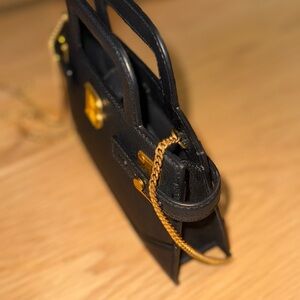 Balmain's Small B-Buzz top handle bag is a compact yet chic accessory, crafted in Italy of grained leather. The design features a chain-link strap for versatile carrying options.