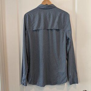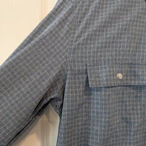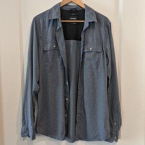 PrAna Shirt Men's Size ST Blue Gingham Garvan Button-up Vented Long Sleeve Shirt