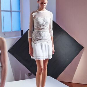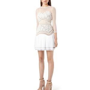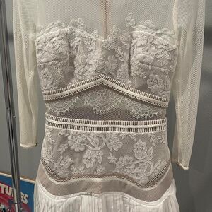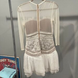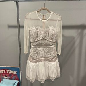 Three Floor White lace mini dress with mesh sleeves