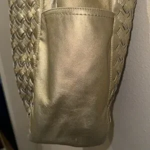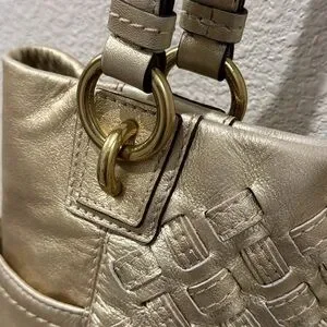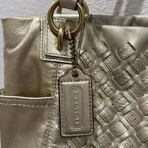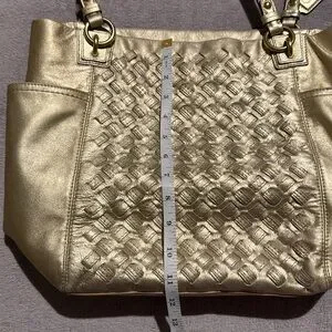COACH North South Woven Metallic Gold Leather Shoulder Bag #F17099