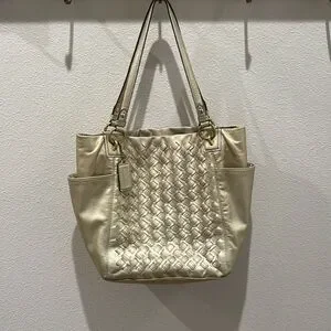COACH- North South Metallic Woven Leather Gold Leather Shoulder Bag Tote F17099