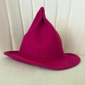 100% wool felt WITCH pointed hat raspberry rose red cap Halloween French Wizard