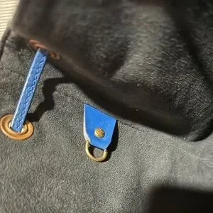 Great vintage condition, with minor signs of use including on drawstring, scuffs, tarnishing on hardware, discoloration, markings in the interior, but no major callouts, no oder