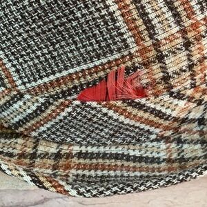 Dobbs brown plaid hat with side gold buckle. Hat shows some wear on inside but overall very good condition. Cute in fall with the brown colors. Inside of hat measures approximately 8 inches from front to back opening.
