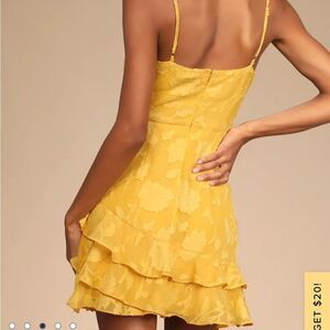 NWT Lulus Days With You Golden Yellow Floral Ruffle Mini Dress Size Large