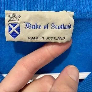 This sweater has some moth holes and a few marks. I am discounting it accordingly bc it is awesome soft Scottish cashmere from the royal mile.