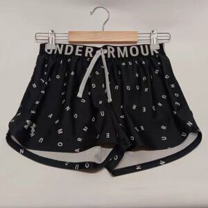 Under Armour Girls UA Play Up 3.0 Shorts Size Large Black White Logo 3" Inseam