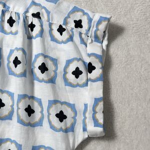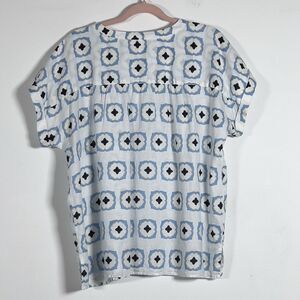 Ann Taylor Geo Linen Popover Short Sleeve Top Sz L Multicolor Relaxed 1/4 Button