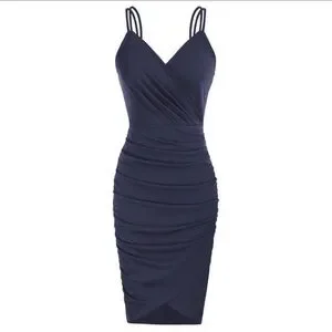 🌟nwt GRACE KARIN Summer V-Neck Spaghetti Dress Retro Ruched Bodycon Dress🌟