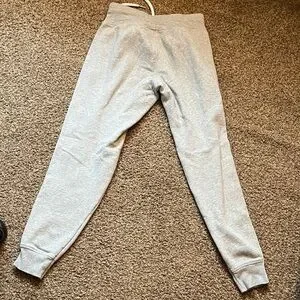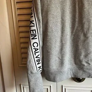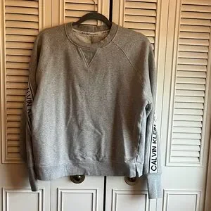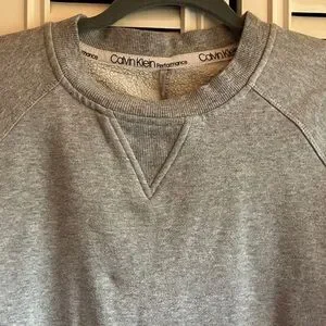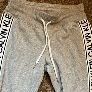 Calvin Klein Performance sweatsuit. Light Grey set. Crewneck sweatshirt. Jogger bottoms with white tie. Black & White logo on side of bottoms & across back of top. Size extra small.