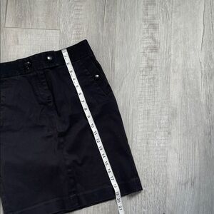 Chic black pencil skirt by J. Crew. Features button accents and sleek design. Ideal for professional or casual wear. Chino skirt. Comfortable, versatile, perfect for fall. Looks elegant and effortless. Pre-owned, very good shape (the only thing is that buttons are not as shiny, nothing else is wrong). Thank you!