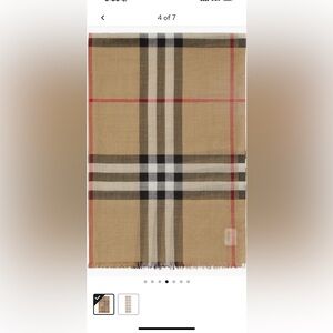 Elegant Burberry scarf with large beige and red check design in lightweight gauzy wool/silk material. Originally purchased from Nordstrom. Only worn a handful of times and in excellent condition.