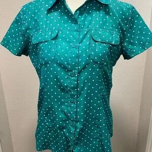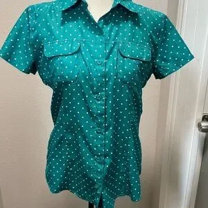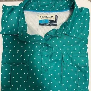 Magellan Outdoors Teal Polka Dot Button Down Shirt
