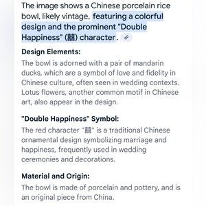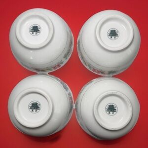This product is a set of 4 vintage Chinese porcelain rice / soup bowls featuring a beautiful bird design. The oriental theme of the bowls reflects traditional Chinese culture and symbolism, making them a unique and elegant addition to any collection or table setting. Perfect for special occasions like weddings or cultural events, these bowls showcase the craftsmanship and intricate details characteristic of Chinese ceramics. Made in China, these bowls offer a glimpse into Chinese history and traditions. Measure 2.5" tall and 4.5" in diameter. Excellent condition.