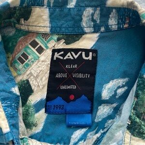 Kavu The Jam Yurt Shirt Button Down Hawaiian Short Sleeve Blue Cotton M - EUC