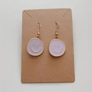 Charming smiley earrings with gold accents. Lavender adds a playful touch. Ideal for any outfit.