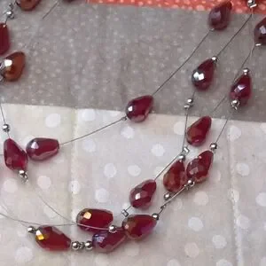 This elegant multi-strand necklace features stunning red beads, perfect for adding a touch of sophistication to any outfit. 18, 19 and 20 inches long