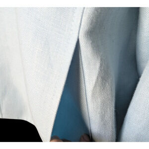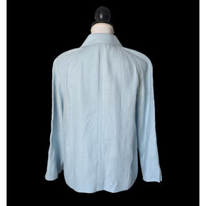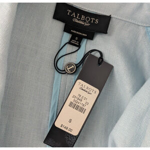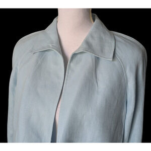 Talbots Pure Irish Linen Light Blue Open Front Jacket New Small Slit Sleeve
