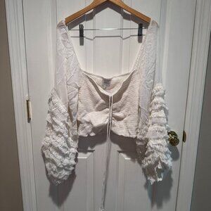This cropped blouse is a romantic style cut from lush chiffon fabric that transitions effortlessly from daytime to evening
