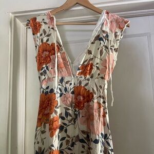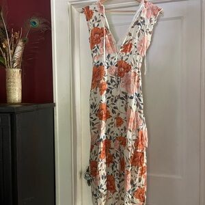 Chic high low dress with soft floral pattern. Features a flattering V-neckline. Perfect for any event. Made of 100% rayon. NWOT - never worn.