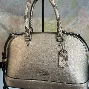 Coach Gold Metallic and Python Embossed Domed Sierra Satchel