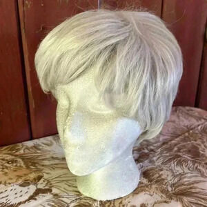 Vintage Wig Grey White Platinum Short Layered Unisex Costume 60s 70s