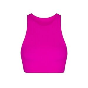 Skims small high neck fuschia pink crop tank/bra, very stretchy soft lightweight material,good preowned conditions, Bold and stylish High-neck . Ideal for workouts or casual wear.