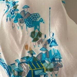 The length from the neck seam center back is 32”, The waist while lightly closed is 48” but obviously this is a float fit. I’d say a person size 2-10 can wear this!