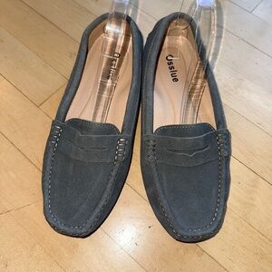 New OSSLUE grey driving flat moccasins, 10.5, PG1470