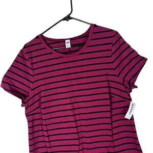 Old Navy Striped Tee Dress Burgundy Red Black Short Sleeve Casual Everyday