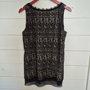 Cabi Womens Black Lace Sleeveless Top W/ Bow Detail Size M