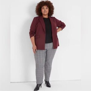 Elegant Lane Bryant Ponte blazer. Ideal for versatile styling. Long sleeves with triple button cuffs. Single button closure. Stretchy knit that also offers structure.