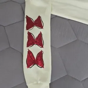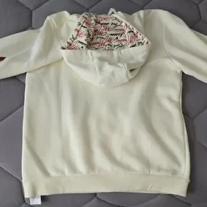Charming cream hoodie with Minnie Mouse graphic. Features a zip-up front and cozy pockets. Ideal for everyday wear.