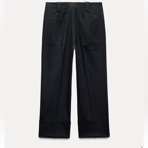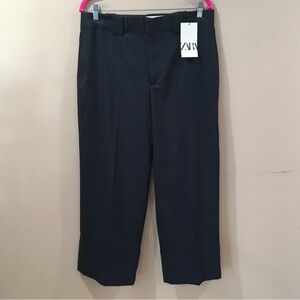 ZARA pants Striped Large Womens Trouser Navy Hi Waist ZW Collection 4042/259 New