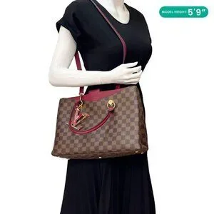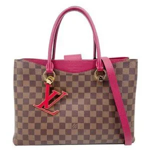 Crafted in Damier Ebene canvas with leather trim, the Riverside tote blends structure and sophistication. It features dual top handles, a detachable strap, and a spacious interior for everyday essentials. Gold-tone hardware completes its polished look.