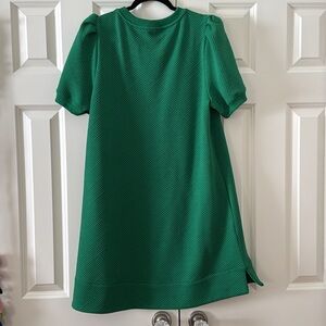 Chic green dress by JODIFL. Features textured fabric and short sleeves. Perfect for any occasion.