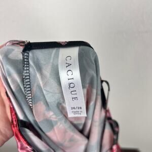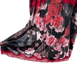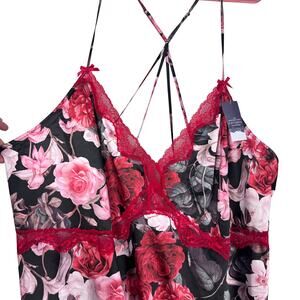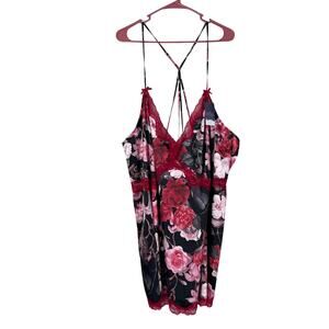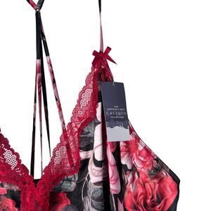 Cacique lingerie chemise in women’s size 26/28. Sexy and feminine with bold red lace trim and a romantic rose floral print.