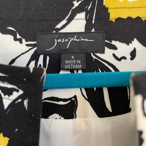Josephine Black White Yellow Floral Jacket. No closures on front. 3/4 Sleeve Like new pristine condition. Size 4