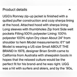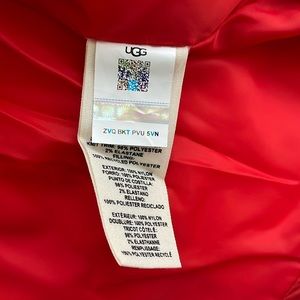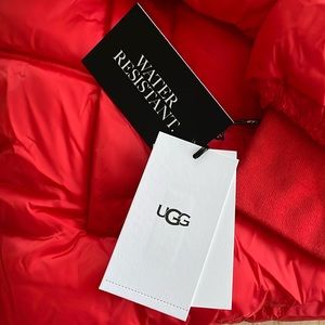 Brand new with tag UGG Women's Black Ronney Hooded Puffer Jacket. Size L. Color: beautiful Red. Retail:$198 plus tax. Stock photos with different colors are to show you the style of jacket.