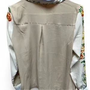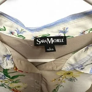 Sara Michelle Beige and White with Floral Print Blouse Fall top 90s Y2K top nwt