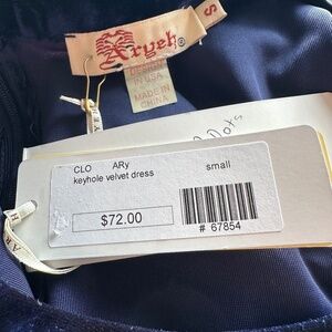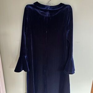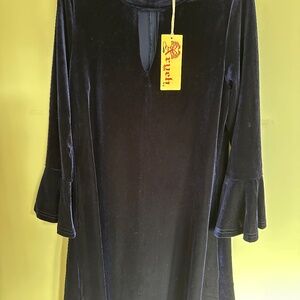 NWTAryeh Dark Blue Velvet Keyhole Dress Sz S Poly/Spandex Flare Sleeve Zip Back