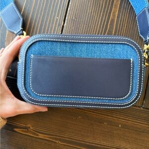 Chic denim crossbody with iconic logo. Features blue tones and gold hardware. Like new condition. No identifiable signs of wear. Only carried once or twice for night out. Smoke and pet free home.
