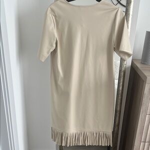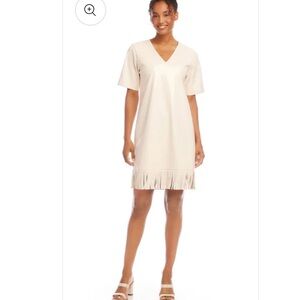 NWT Karen Kane Beige Fringe Vegan Leather Dress