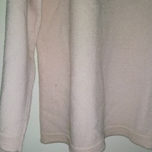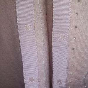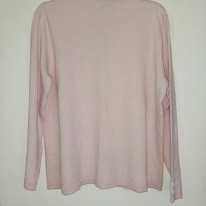 Pink snap style buttondown. beaded. crew neck. long sleeve. very detailed. *small hole in back on the bottom see pics*. 100% lambswool. GUC