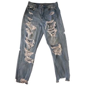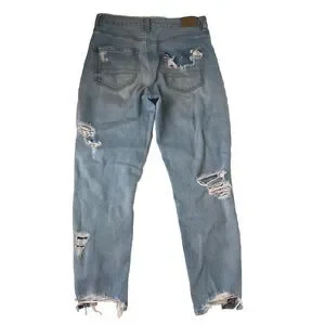 American Eagle Women’s Mom Jean Light Blue Distressed Size 4 Short